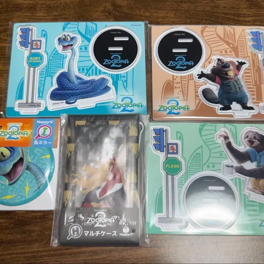 주토피아 캐릭터 5종 세트 아크릴 스탠드, 거울, 멀티 케이스