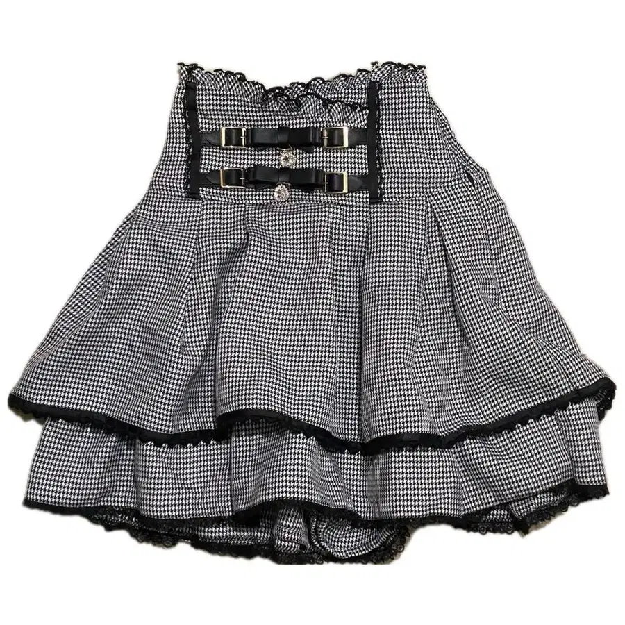 LIZLISA 2단 리본 벨트 스커트바지 하운드투스 체크 패턴 그레이