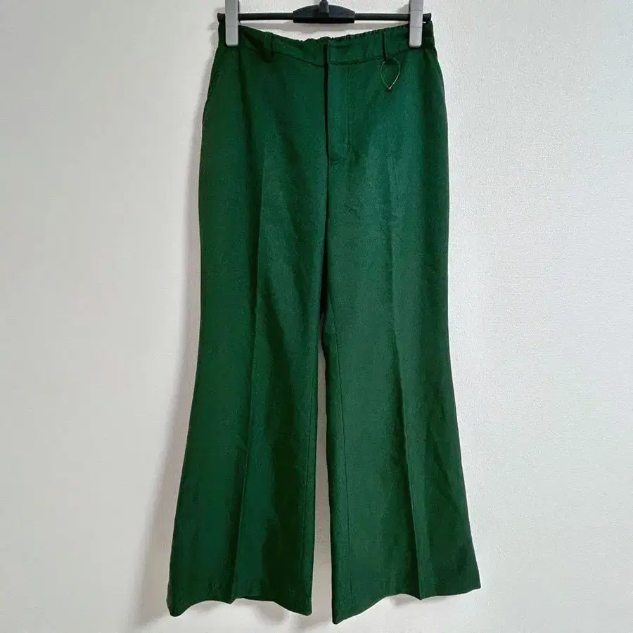 폴리에스테르 100%의 그린 와이드 팬츠, 프론트와 백에 포켓 부착.