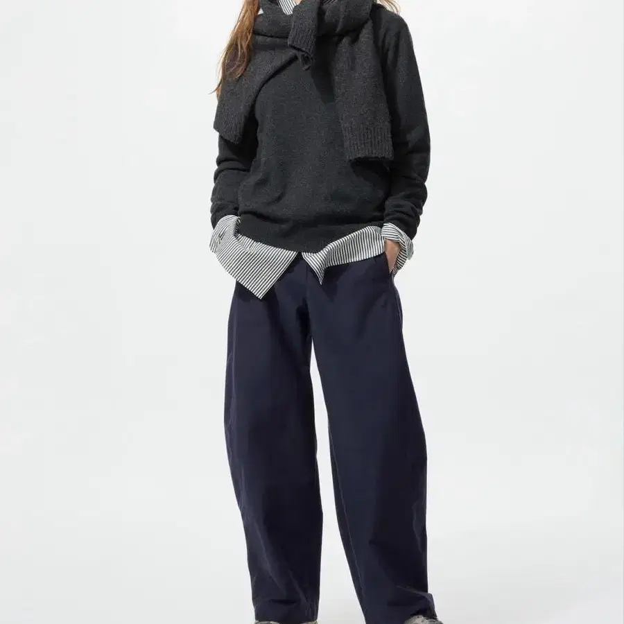 유니클로/저지 배럴 레그 팬츠/네이비 M