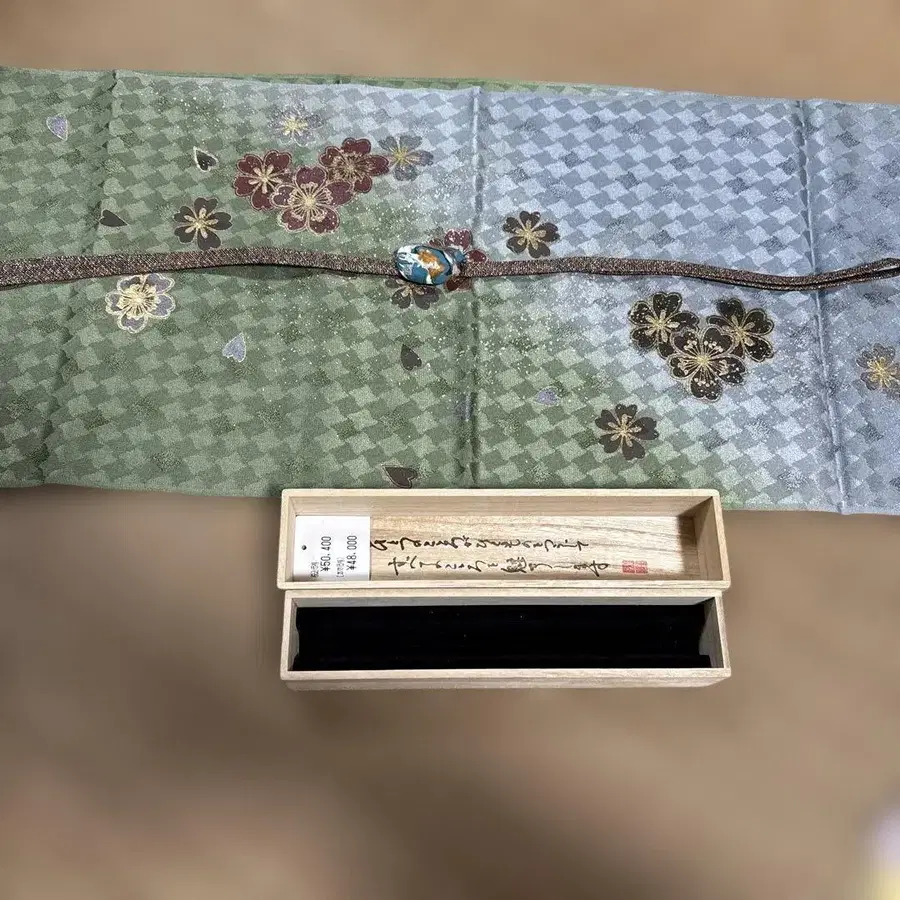 순수 실크 꽃잎 문양 옻칠 금가루 오비아게와 작가 허리띠 세트