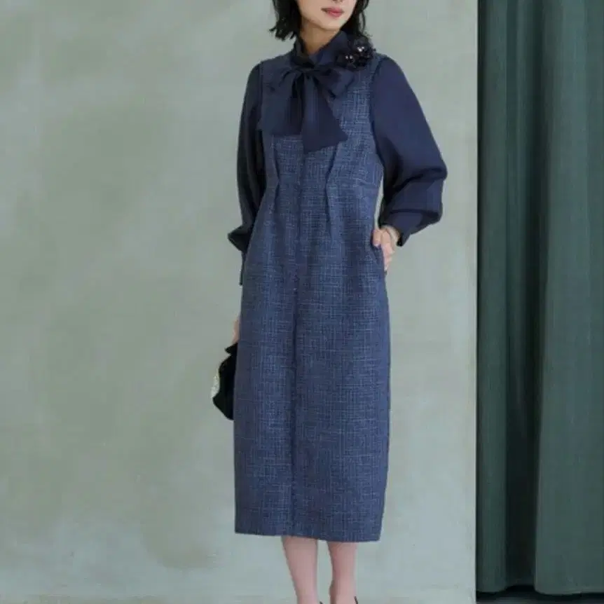 루일 에 부티크 믹스 트위드 콤비 롱 내로우 원피스 드레스