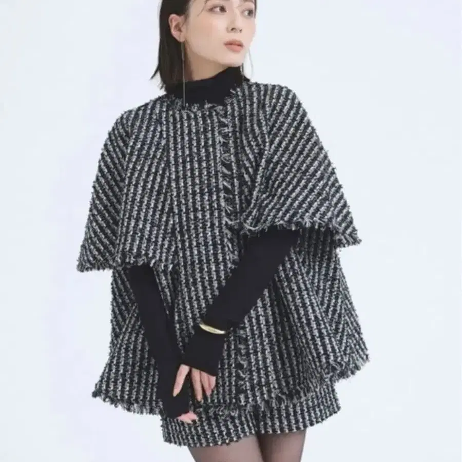 걸치기만 해도 멋스러운, 고급스러운 인상의 트위드 소재 케이프 자켓입니다.
