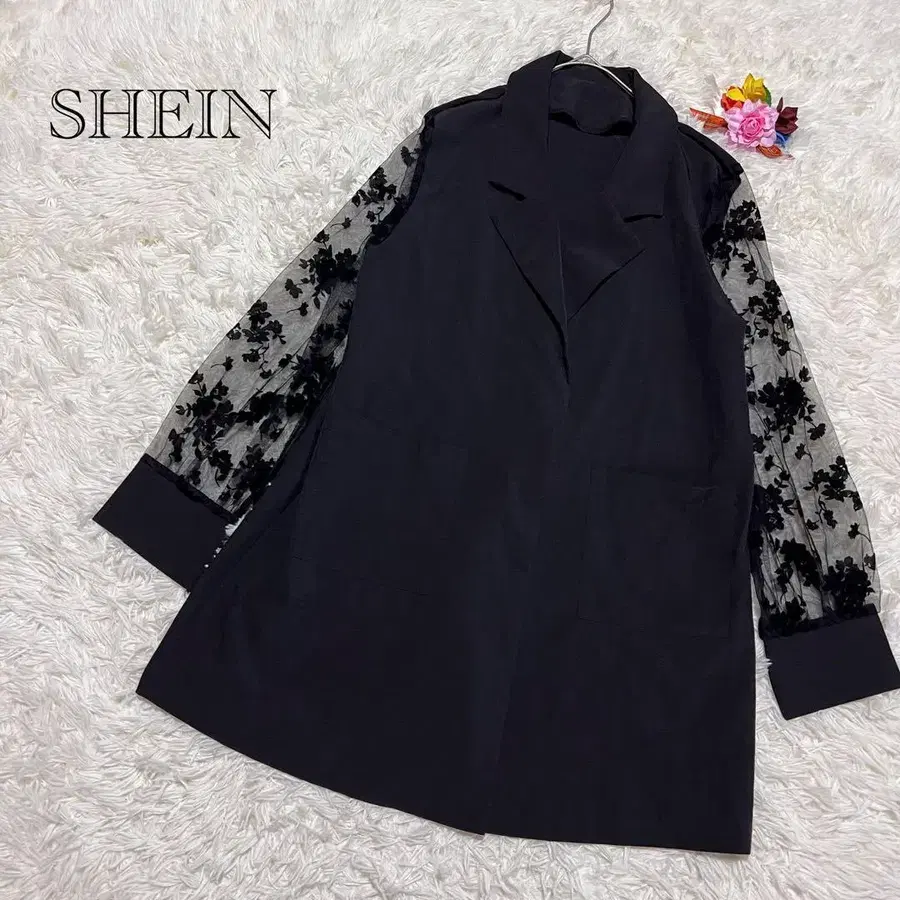 쉬인 롱 겉옷 L 자켓 꽃무늬 튤 소매 고급 루즈핏