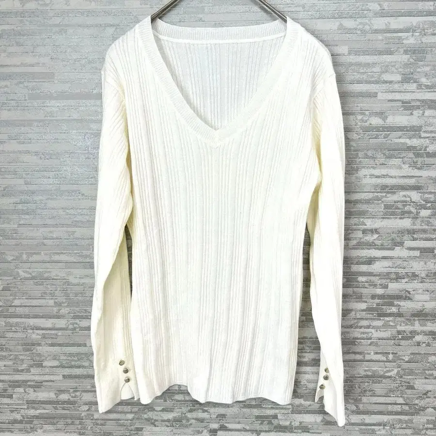 오리히카 워셔블 니트 M 화이트 V넥 긴팔 고급 출퇴근 오피스 캐주얼