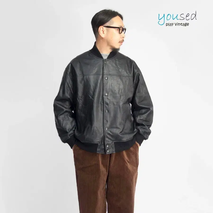 전 세계의 빈티지 의류를 해체하여 재구축한 아이템을 출시하는 다이칸야마의 구제 의류점 YOUSED(유즈드)의 가죽 바시티 자켓입니다.