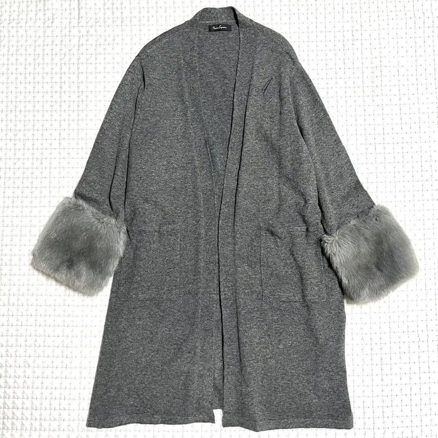 가디건 롱가디건 토퍼 가디건 로고 자수 퍼 소매 알파카 혼방 양모 울 무릎 기장 코트 아우터 넉넉한 빅 사이즈