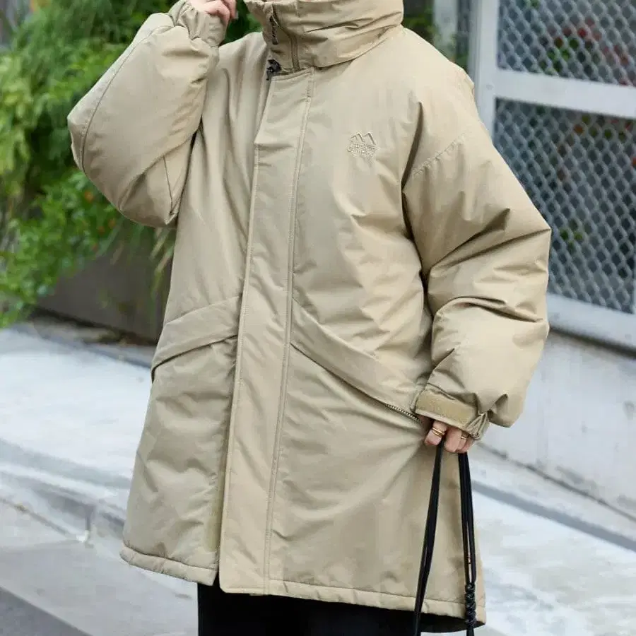 • 울트라 웜 롱 다운 자켓 베이지 후드 부착 벤치 코트