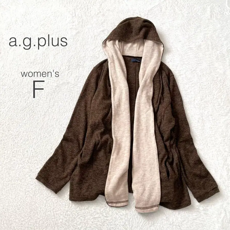 a.g.plus 에이지플러스 랩 니트 가디건 긴팔 후드 포켓 있음 캐주얼 내추럴 겉옷 브라운 새상품급
