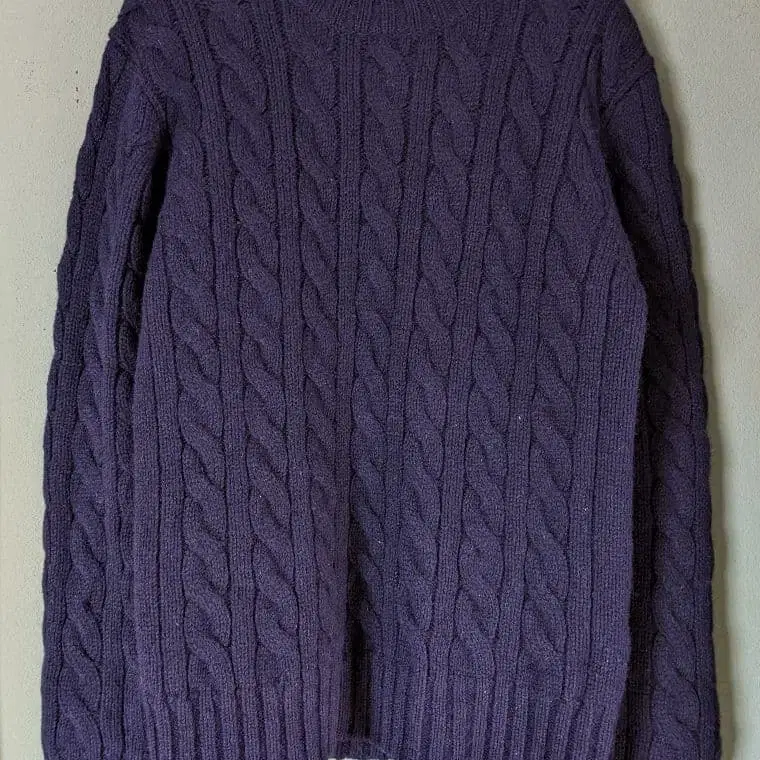 울 스웨터 두꺼운 원단 니트 케이블 짜임 오버 사이즈 네이비