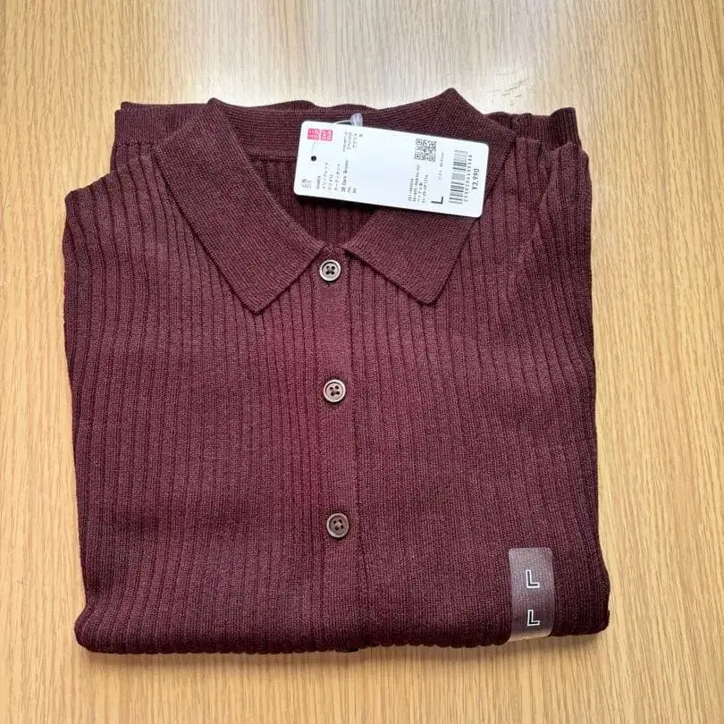 택 포함 새상품 유니클로 메리노 블렌드 리브 폴로 가디건 브라운 L