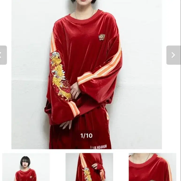미개봉 새상품 chukatabetai 츄카타베타이 타이거 트랙 맨투맨/레드 L 사이즈 벨로아 맨투맨 [ L ] 기장 69 가슴 너비 65 어깨 너비 71 소매 길이 65 추천 신장 165cm ~ 175cm 맨투맨 특유의 적당히 조여주는 소매 리브와 루즈하고 오버사이즈인 넉넉한 착용감을 추구했습니다. 촉감 부드러운 벨로아 소재를 사용했으며, 팔 자수와 배색 라인이 악센트가 되고, 가슴 부분의 자수가 포인트입니다. 고급 소재인 벨로아 소재를 활용하여 제작했습니다. 부드럽고 촉감이 좋은 원단과 팔의 전체 자수로 단품만으로도 돋보이는 상품입니다. 트랙 팬츠와 함께 셋업으로 꼭 착용하고 싶은 아이템입니다. 어깨 너비/가슴 너비/소매 길이/기장 어깨 너비 - 71cm 가슴 너비 - 65cm 소매 길이 - 65cm 기장 - 69cm 색상 - 레드 계열 얼룩, 찢김, 냄새 등 - 없음