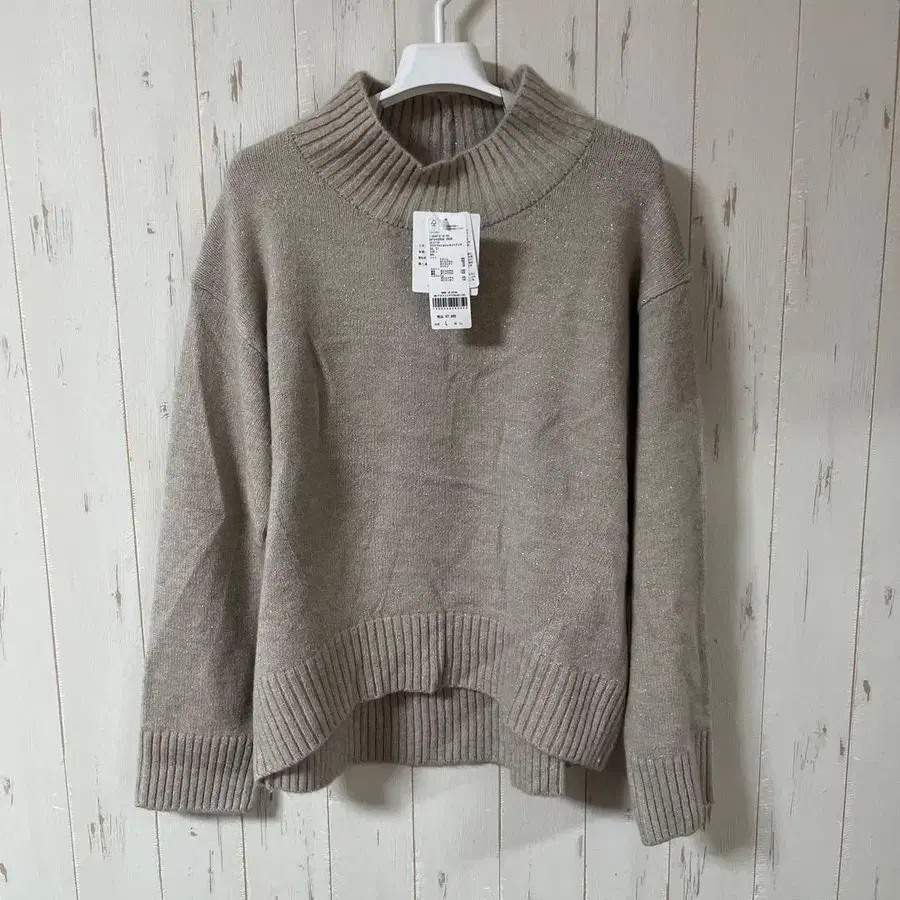 아이보리에 가까운 베이지색 긴팔 니트 스웨터 L 사이즈