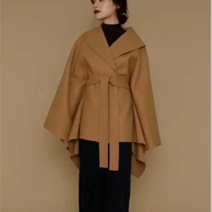 LOr 롤 불규칙 밑단 케이프 코트 카멜