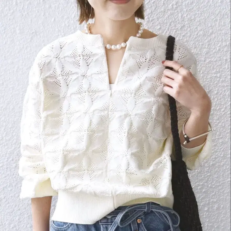 SHIPS 2WAY 플라워 자카드 하프 지퍼 풀오버