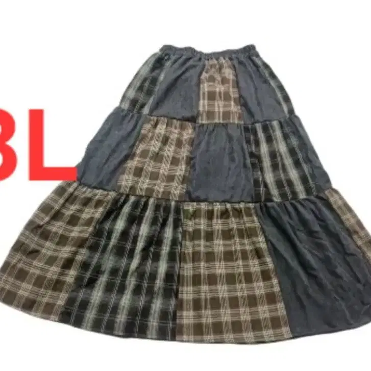 새상품 3L 체크 무늬 패치워크 플레어 롱 스커트