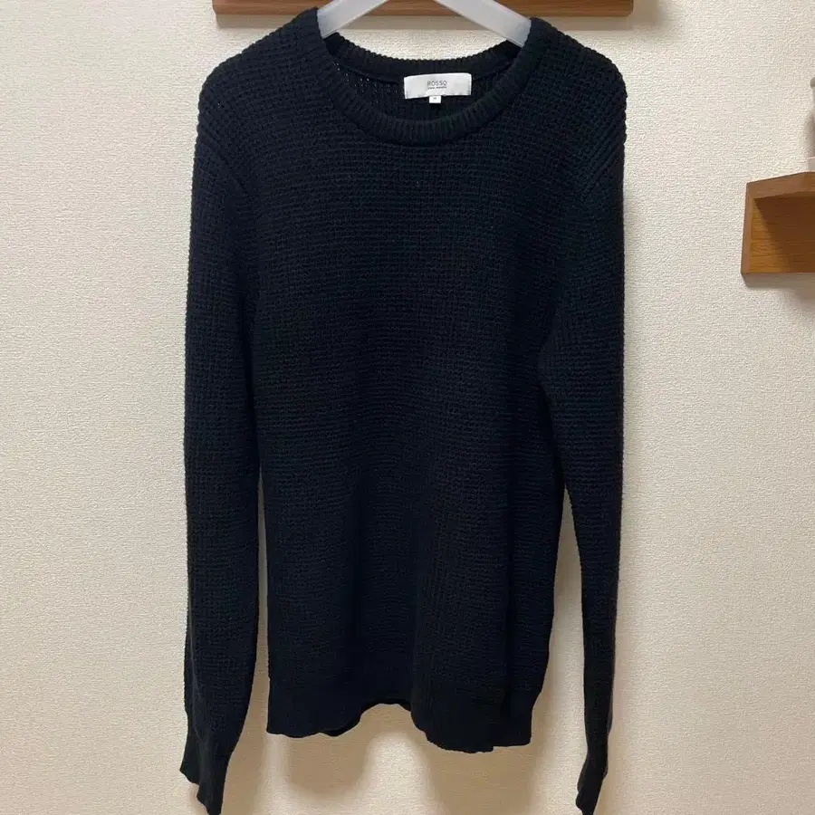 ROSSO 워셔블 스트레치 와플 크루넥 풀오버 블랙 M