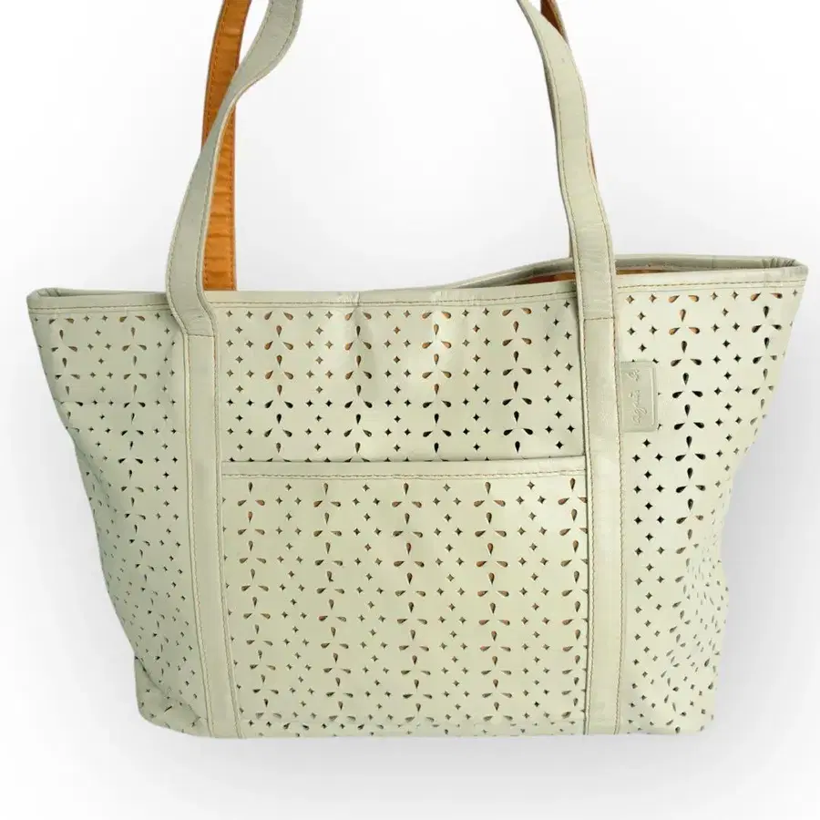 agnes b. 애니에스베 핸드백 가죽 베이지 펀칭 토트