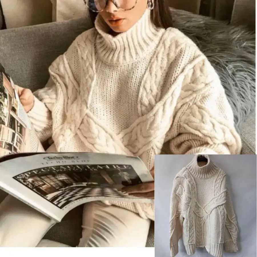 [1~2회 착용] ZARA 케이블 니트 아이보리 빅 실루엣 M 사이즈