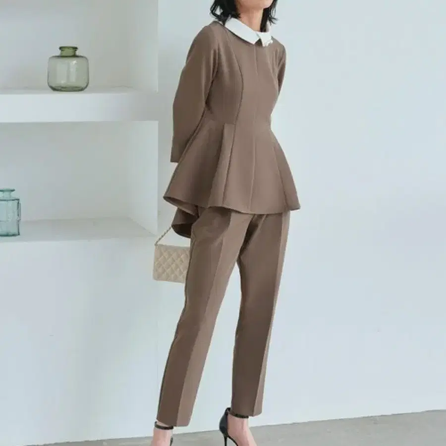 2WAY 펄 탈착식 옷깃 턱 플레어 상의 + 시크릿 밴딩 팬츠 세트