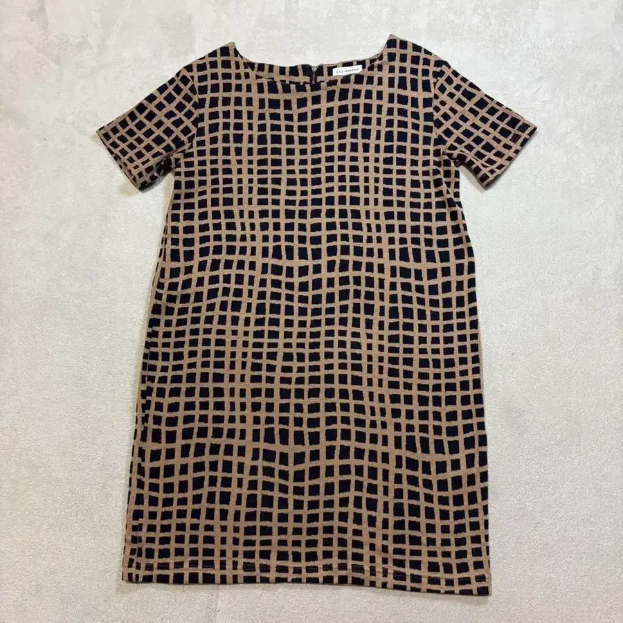 a.v.v standard 베이지 네이비 체크 무늬 반팔 원피스 S