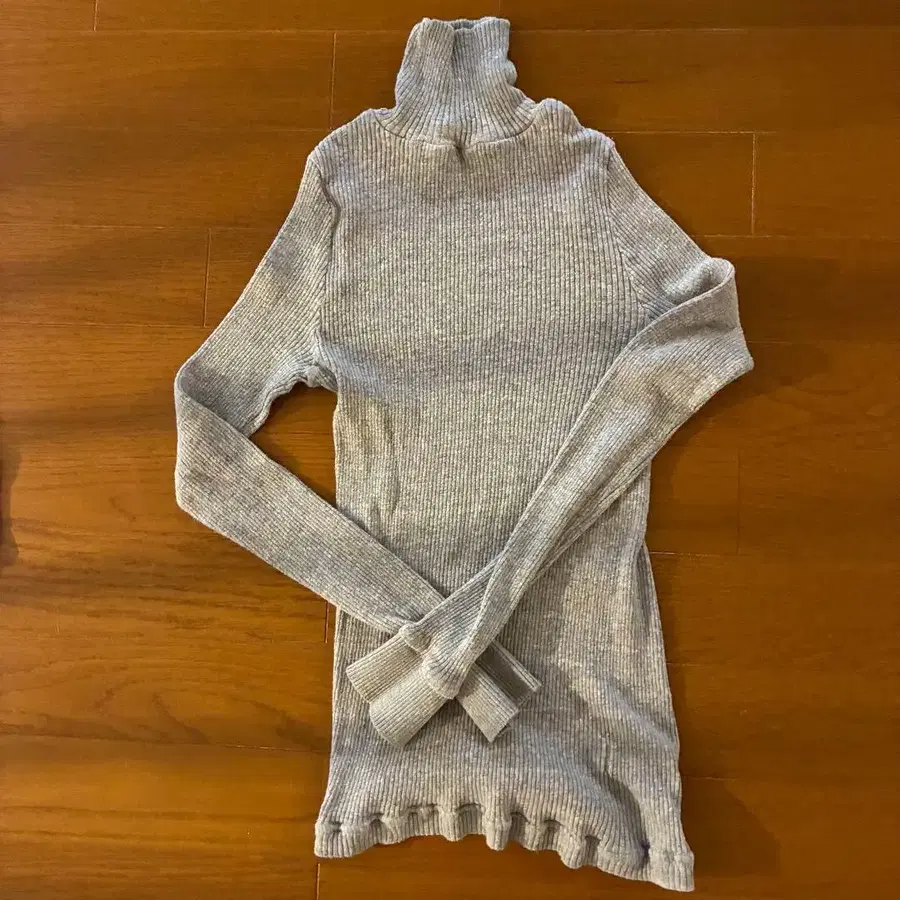 목 부분에 부드럽게 감기는 리브 터틀넥.