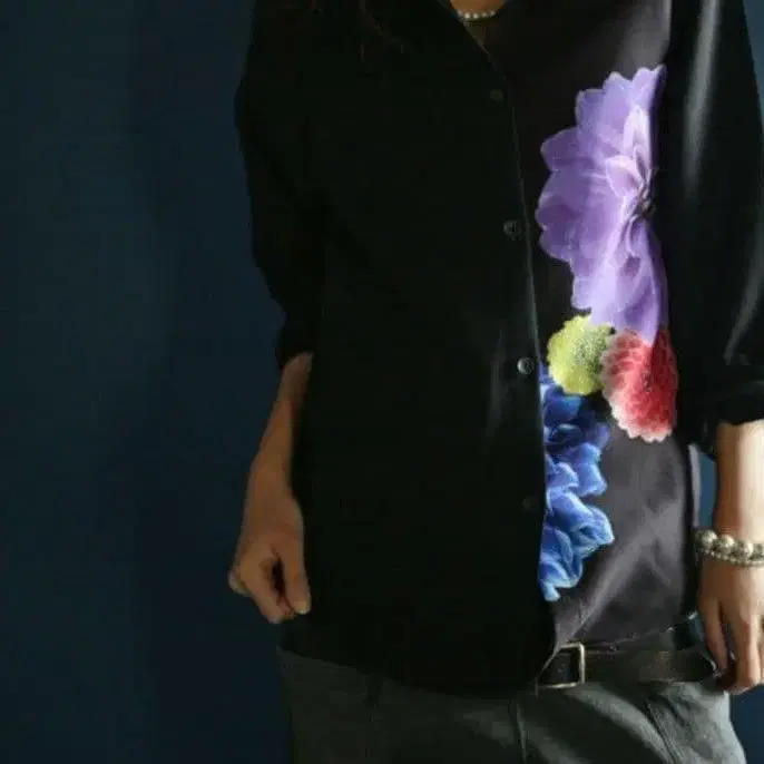 antiqua 꽃무늬 프린트 셔츠 블랙 일본풍 패턴 안티카