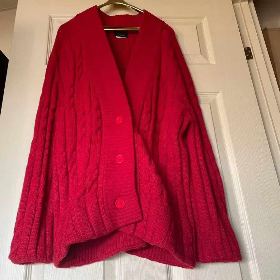 캐시미어 100% 빨간색 케이블 니트 가디건