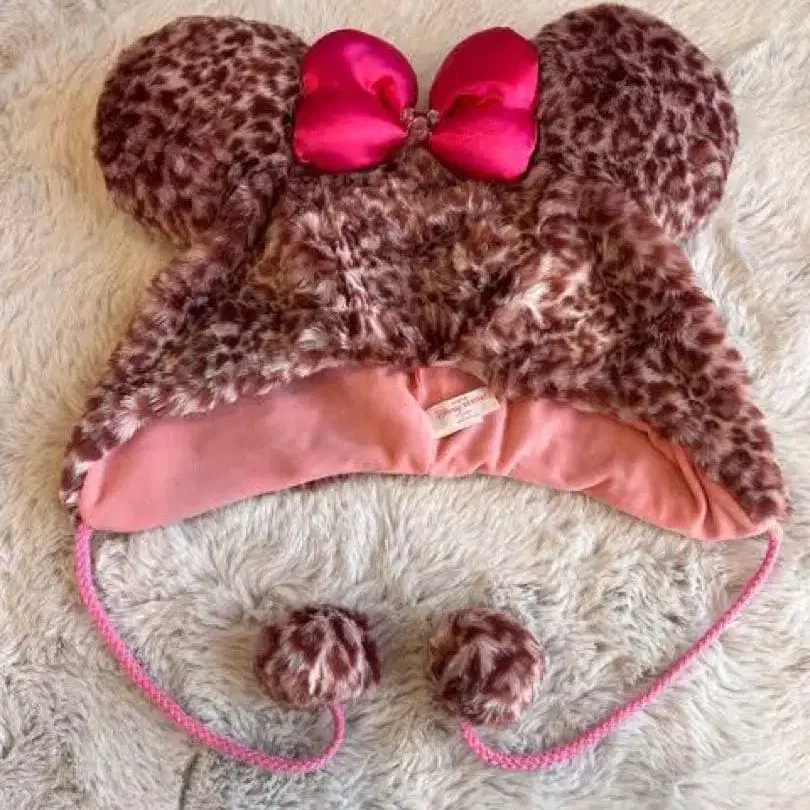 미니 캐릭터 레오파드 무늬 팬캡 핑크