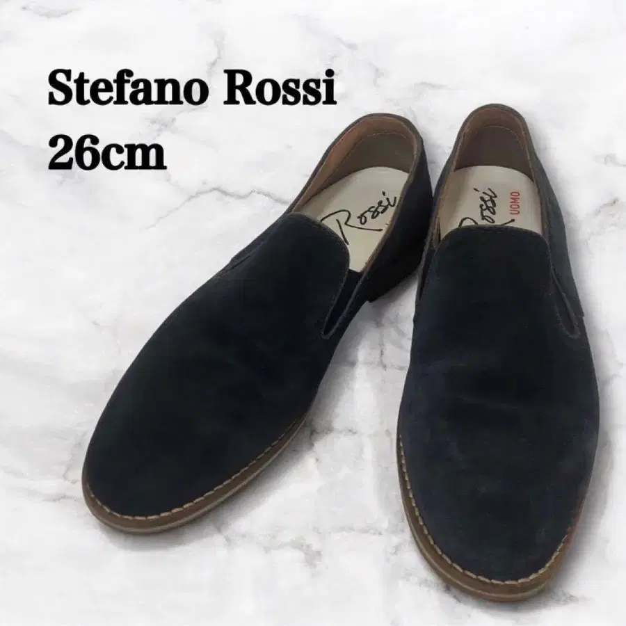 스테파노 로시 천연 가죽 스웨이드 로퍼 네이비 26cm