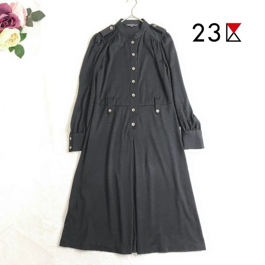 23구 울 100% 얇은 소재 원피스 에폴렛 벨트 장식 블랙 38