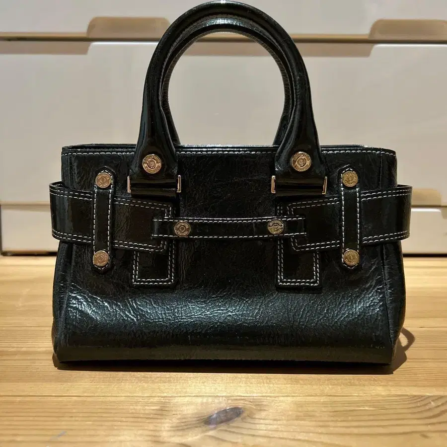 블랙 가죽 핸드백 금장 장식 포함 사만다 타바사