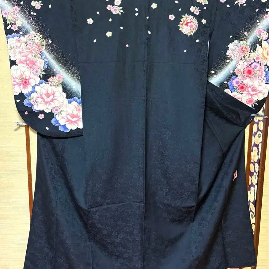 겉감 색상 패턴: 블랙 베이스에 벚꽃, 모란 패턴
