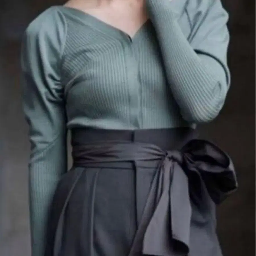 FRAY I.D 데콜테 퍼프 슬리브 리브 니트 가디건