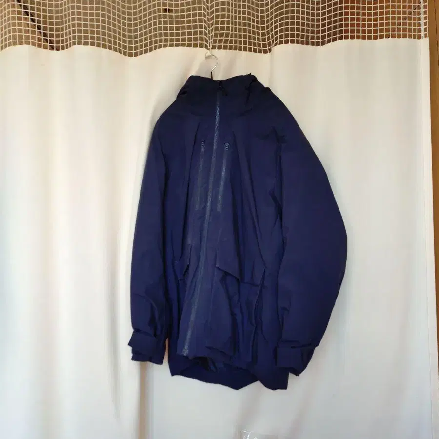 네이비 후드 부착 다운 자켓