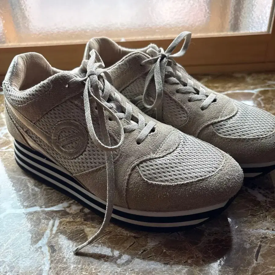 노네임 여성용 스니커즈, 베이지 스웨이드 메쉬 스니커즈