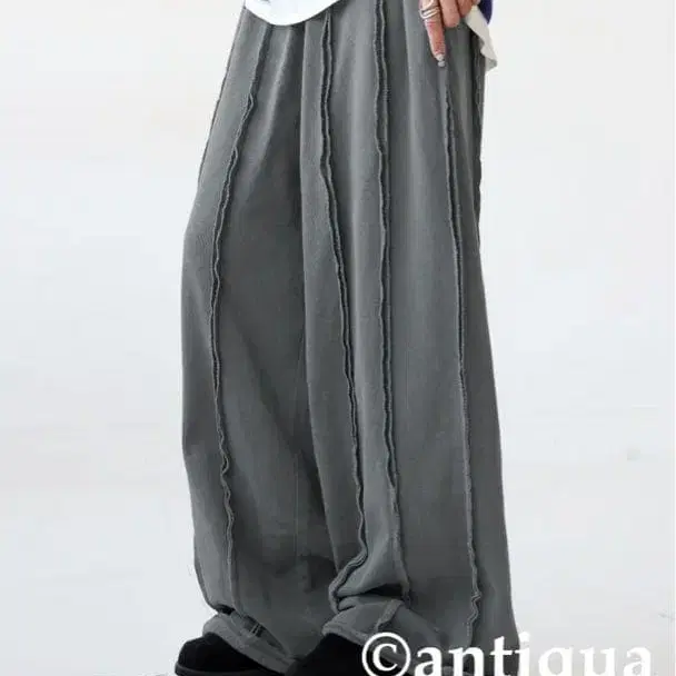 그레이 플리츠 와이드 팬츠 L 사이즈