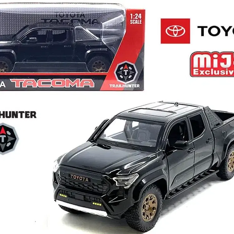 MiJo EXCLUSIVE 1/24 - 2023 TOYOTA TACOMA TRAILHUNTER (BLACK) #こっちんースケール1/18 #こっちんースケール1/24 MiJo 한정판 1/24 - 2023 도요타 타코마 트레일헌터 (블랙) 1/24 스케일 모델 차체 전체 길이: 20cm 보닛, 도어, 테일게이트 개폐 가능 TOYOTA TACOMA 1/24 스케일 미니카, 개폐 가능한 도어와 적재함 포함. - 브랜드: TOYOTA - 모델명: TACOMA - 스케일: 1/24 - 색상: 블랙 - 부속품: 적재함용 액세서리 - 특징: 개폐 가능한 도어와 적재함 - 디자인: 트레일헌터 방문해 주셔서 감사합니다.