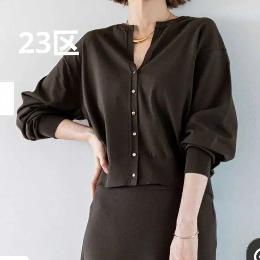 23구 비스코스 스트레치 V넥 니트 가디건 브라운 미사용 새상품