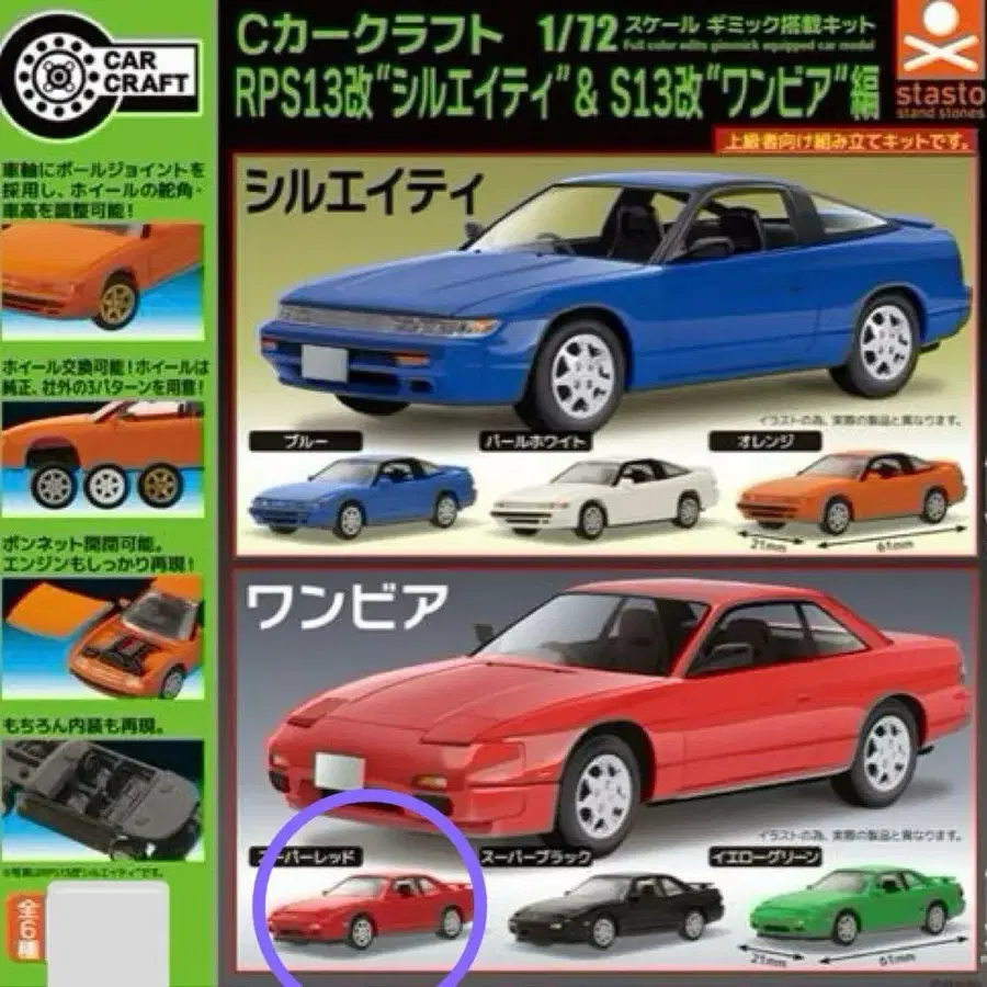 단종 C 크라프트 닛산 원비아 S13 개조 슈퍼 레드 조립 설명서 있음