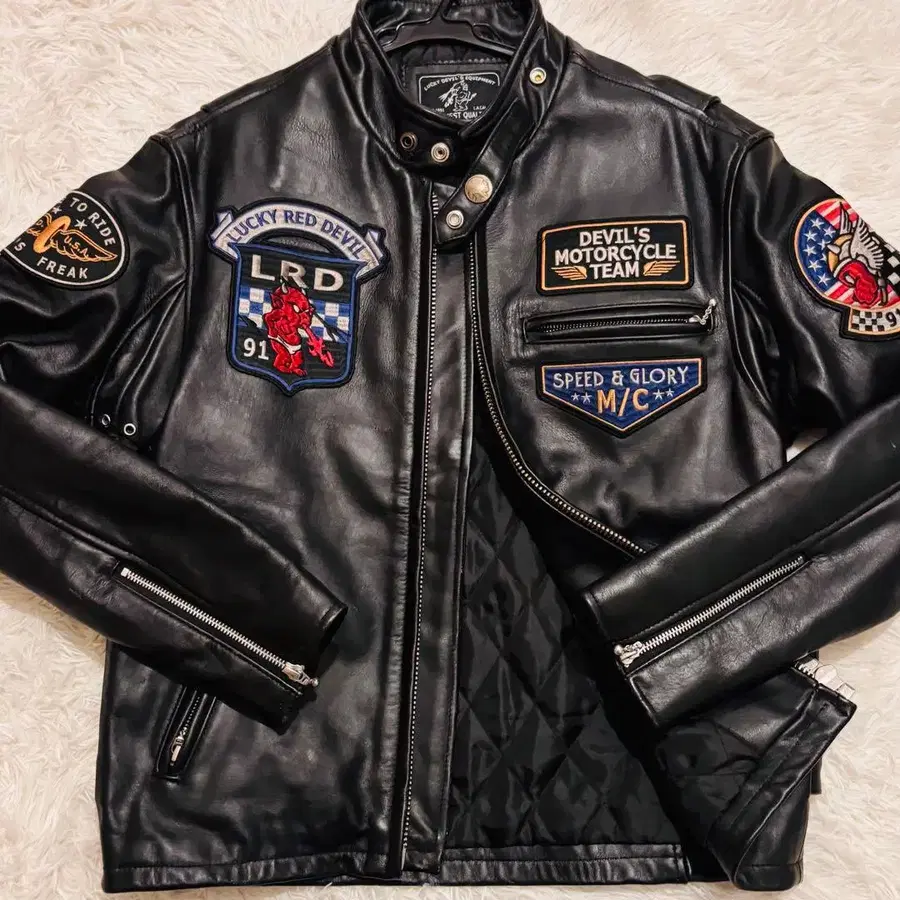 컨디션 최상 TED 럭키 데빌 가죽 자켓 40 로고 자수 블랙