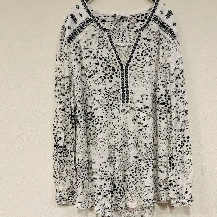 자동 번역되었어요. 원문보기꽃무늬 디자인의 긴팔 튜닉, 코튼 혼합 소재로 쾌적한 착용감.