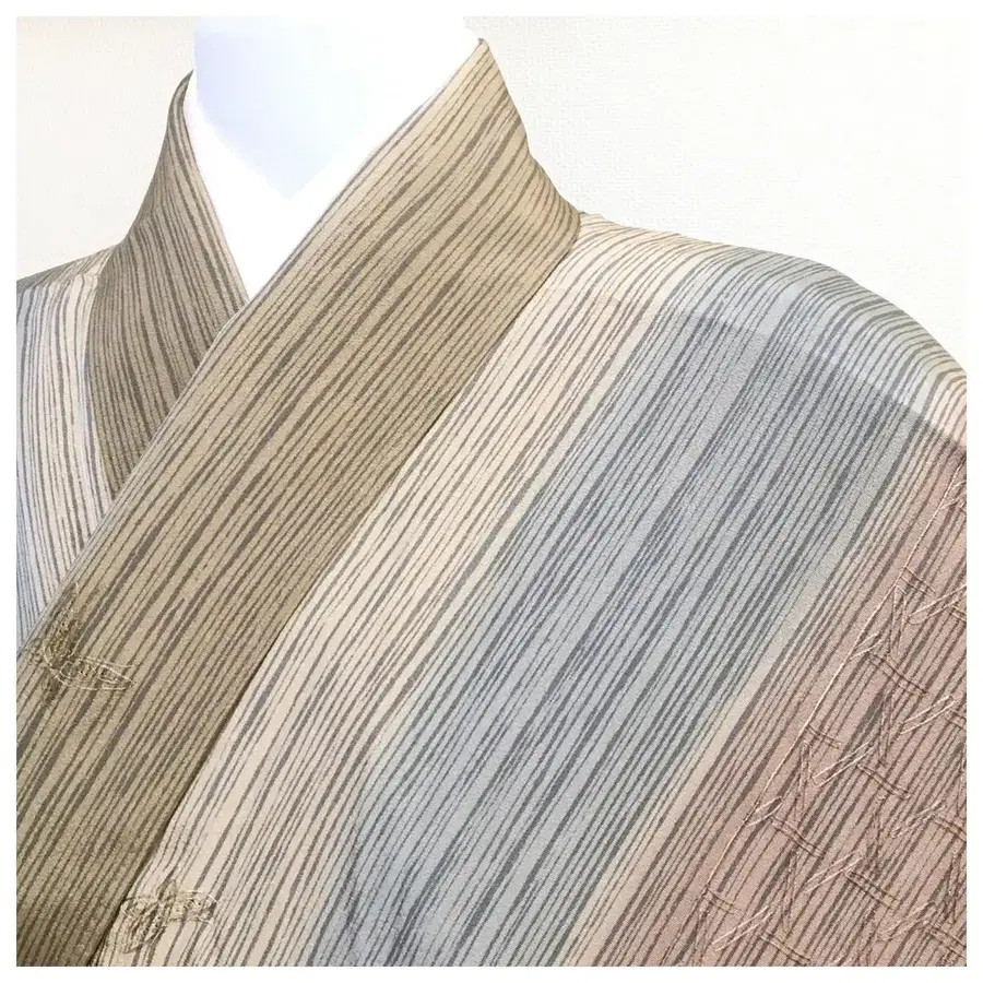 • [새상품급] 명선 순수 실크 기모노 사선 스트라이프