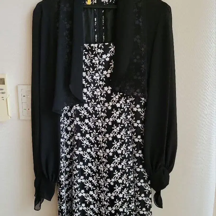 FUN QUETH 꽃무늬 슬리브리스 롱 드레스와 볼레로