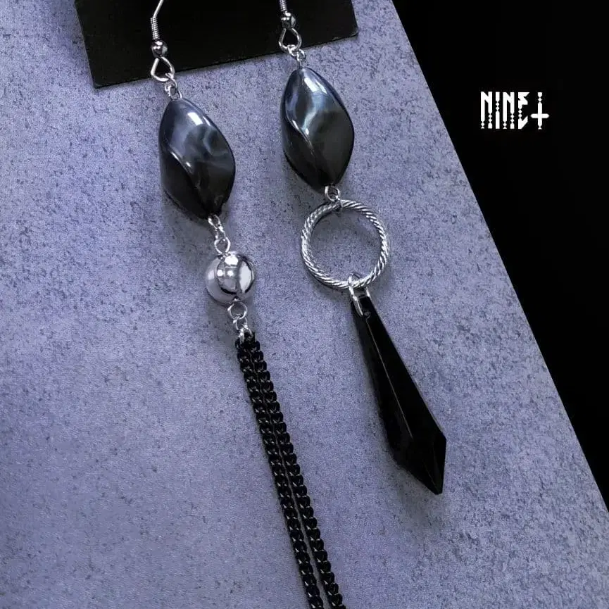1704 개성파 귀걸이 빈티지 모노톤 비대칭 모드 스타일