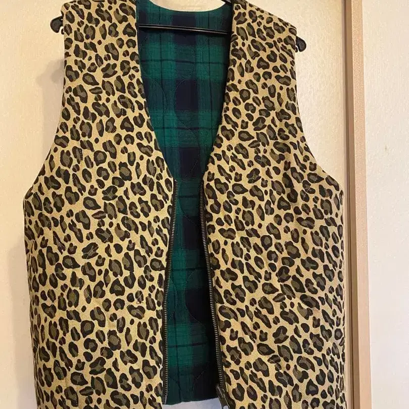 새상품 R E. 리버서블 표범 무늬 체크 베스트