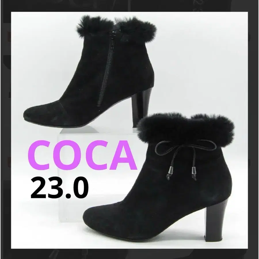 코카 부츠 스웨이드 23.0 COCA 리본 퍼 사이드 지퍼 새상품급
