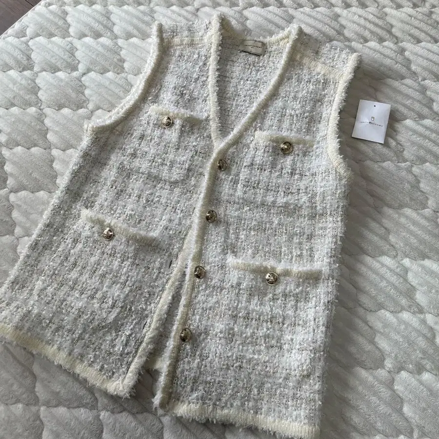 유나이티드 애로우즈 트위드 몰 파이핑 베스트 골드 버튼 교체 버튼 포함