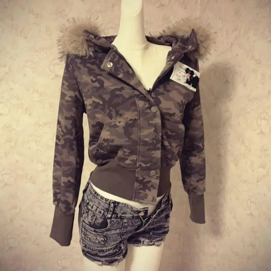 새상품급 헤이세이 갸루 00s 카모 패턴 퍼 후드티 Y2K