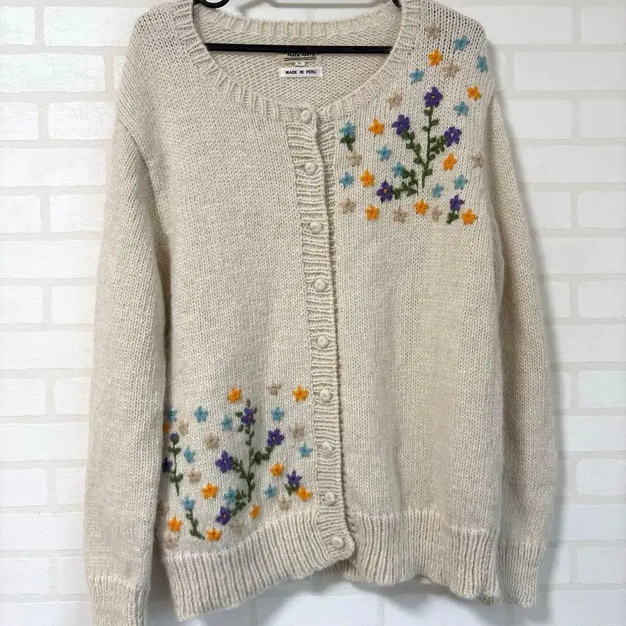 warawara 페루산 알파카 혼방 수제 자수 가디건 L